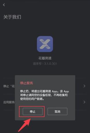 2、接着点击【停止“花瓣测速”服务】,如图所示;