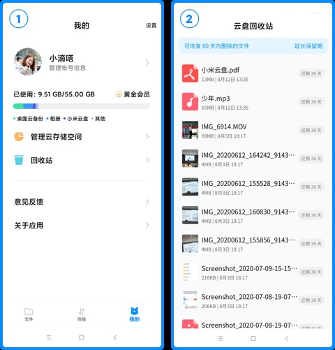在“云盘”中删除的文件可以在“回收站”中找回。您可以根据需要,对文件进行“恢复”或“彻底删除”。