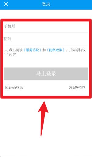 1、登录时,在手机号栏输入注册的手机号码,在密码栏填写正确密码,勾选同意《服务协议》和《隐私政策》后,点击“马上登录”进入系统。