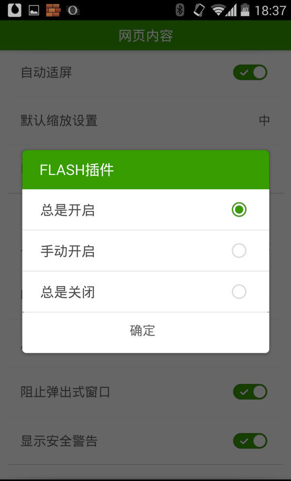 然后依次点击“网页内容”→“Flash插件”→“总是开启”,搞定!此时你可以通过海豚浏览器打开任何包含Flash的网页并使用其中的Flash了: