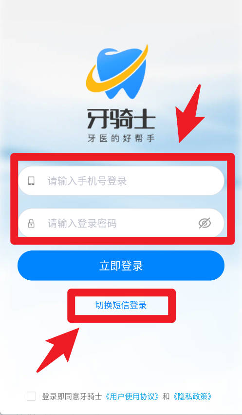 1、在登录页面,用户可以输入手机号和密码完成登录,也可以通过切换短信登录的方式进行验证,确保快速进入系统。