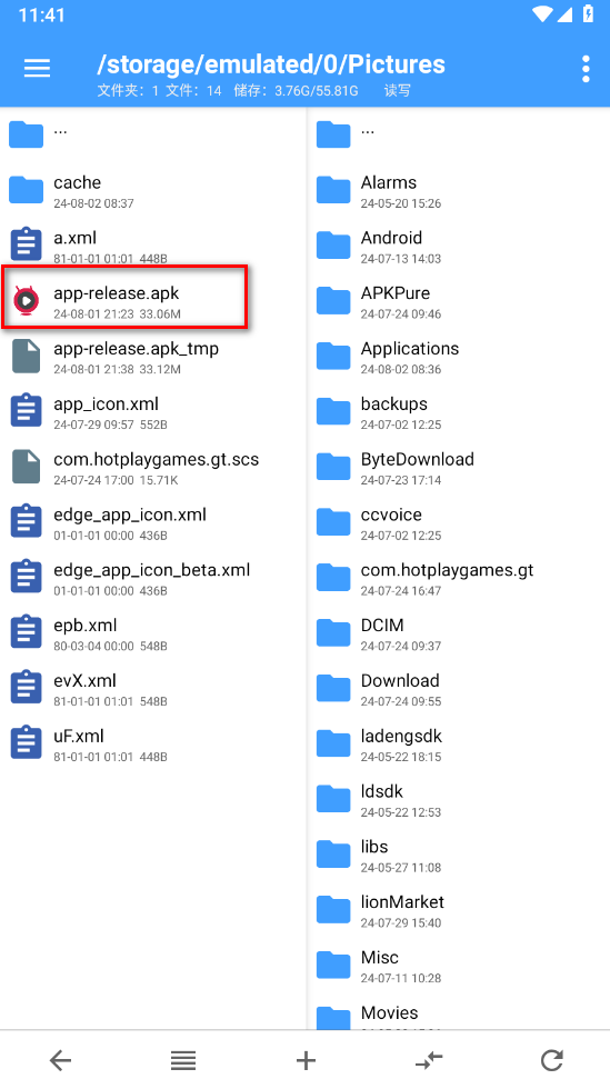 2、点击想改的APK;