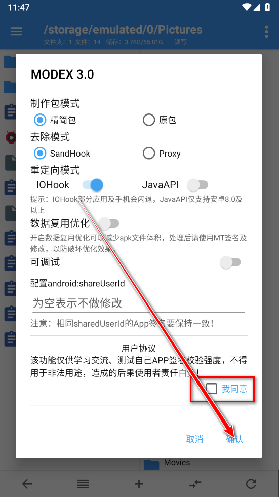 5.勾选我同意,并点击确认即可