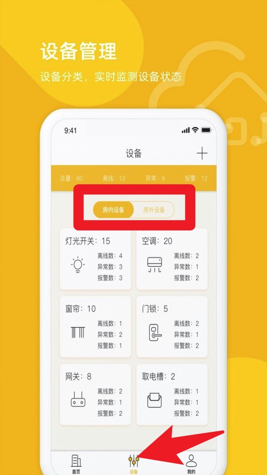 3. 切换至「设备」页签,可查看房内各项设备的运行状态及异常预警。