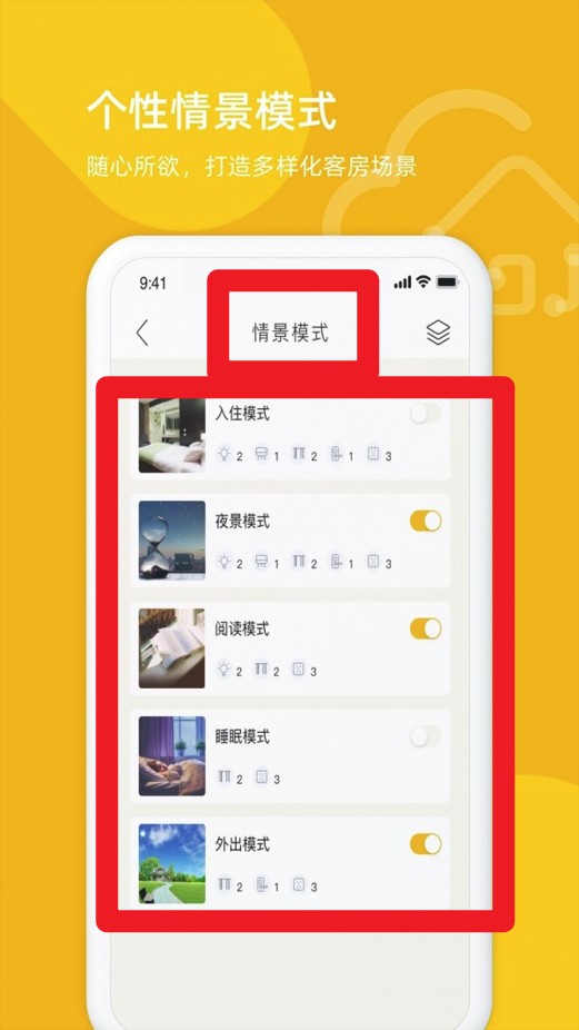 2. 情景模式支持自定义设置,快速应对不同客人需求,提升服务灵活性。