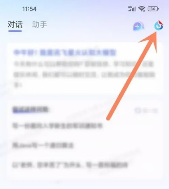 1、在讯飞星火APP中,可以点击右上角的图标来进入历史记录页面。