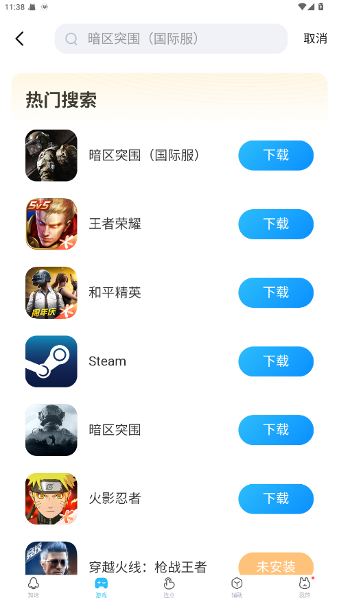 3.随后在搜索框输入想要加速游戏的关键词。