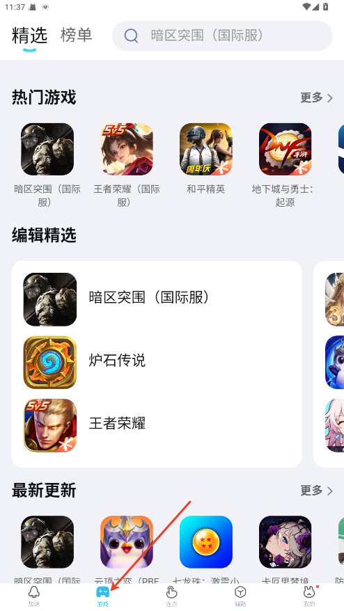 2.如果设备上暂时没有安装游戏,可以先进入底部的“游戏“栏目,在搜索框中输入目标游戏名称。