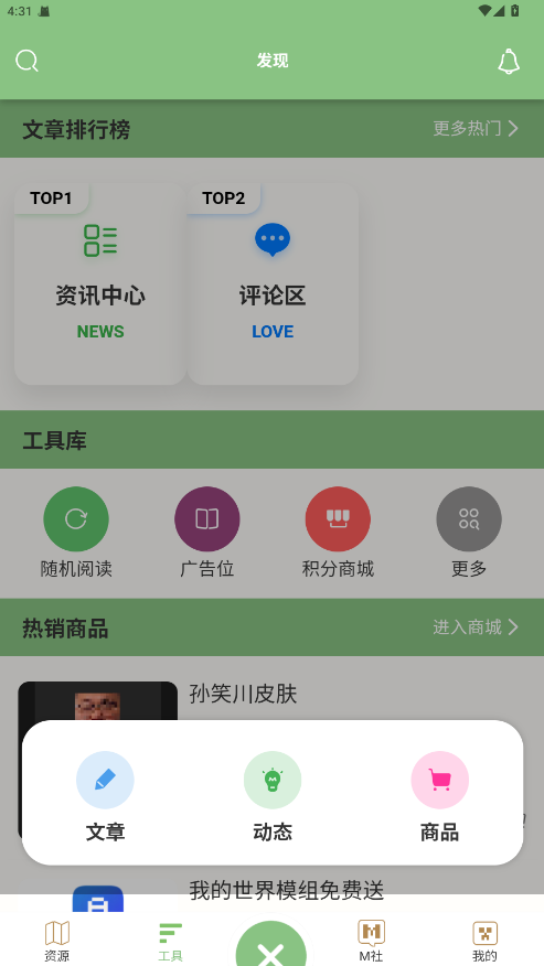 1、在本站下载安装好浮游盒子app官方正版,运行软件,这里有各种功能,如地图存档、mod、材质光影、皮肤等等,你可以根据你自己需要的功能,点击进去;