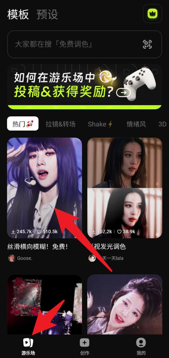 1. 打开 App,点击底部「游乐场」,浏览热门模板,选择喜欢的内容进入查看详情。