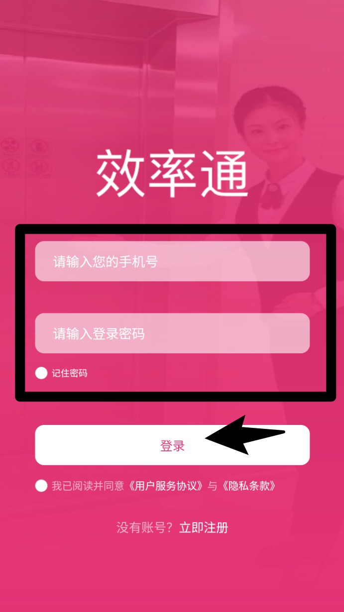 2. 已注册用户返回登录页,输入手机号与登录密码,勾选“记住密码”可免除下次重复输入。