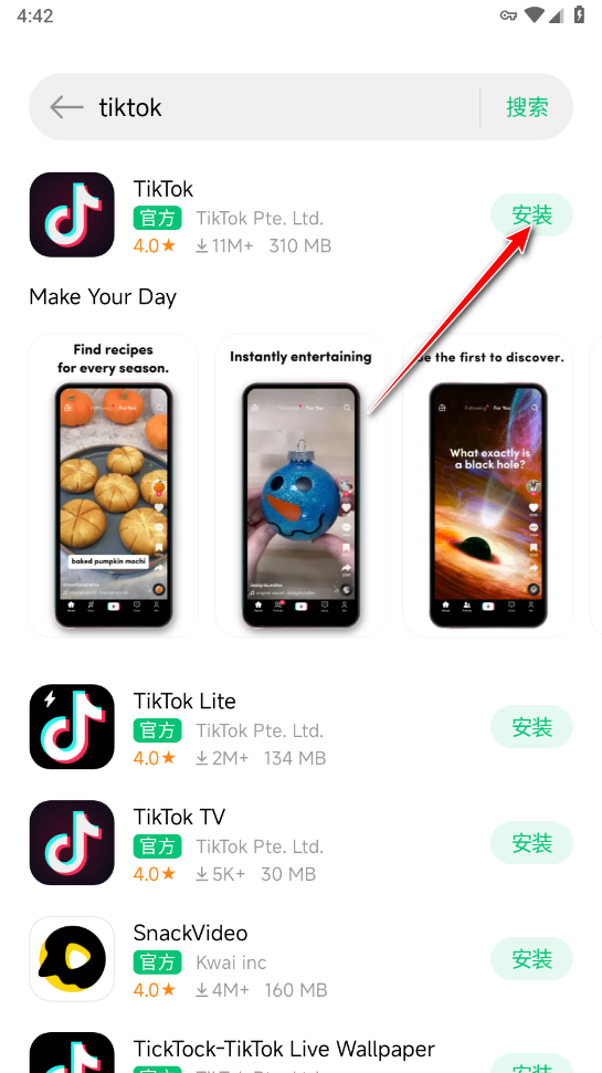 2.在这里小编以tiktok为例,然后点击右边的搜索。