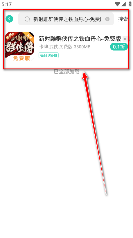5.输入我们想玩的游戏名称,点击搜索,再点击匹配到的游戏。