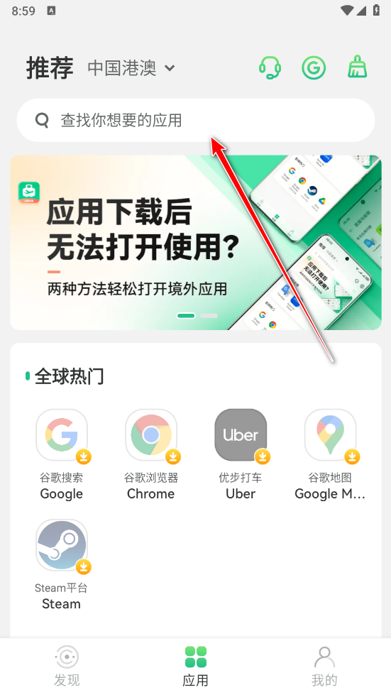 2.上方有个搜索框,我们可以点击它来搜索我们想要下载的app