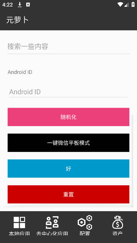 1、打开已下载安装的元萝卜app,在主界面下方点击【配置】图标。