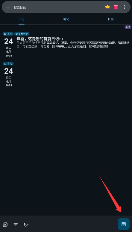 2、在应用首页右下角找到明显的新建日记按钮,点击后进入日记编辑界面。