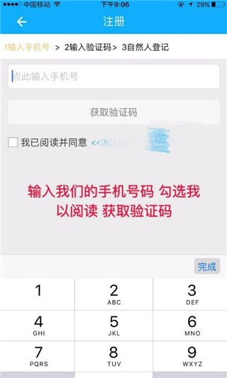 5、点击“点此输入手机号”输入我们现在所用的号码。勾选我已阅读并同意,获取验证码。