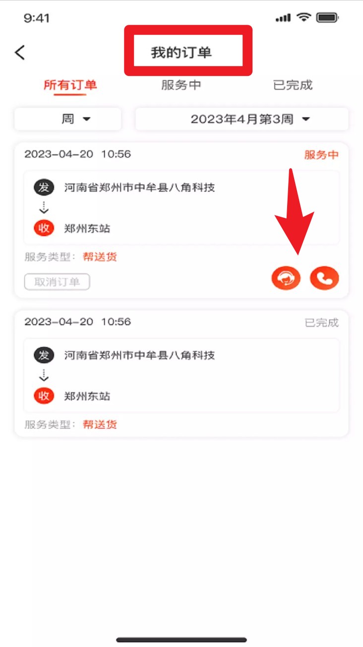 4. 点击底部菜单中的「查看订单」,进入“我的订单”页面可查看当前与历史跑腿任务详情。
