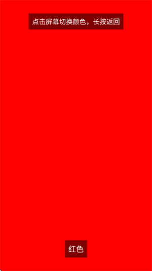 4、以纯色检测为例,打开它,点击屏幕切换颜色,长按返回