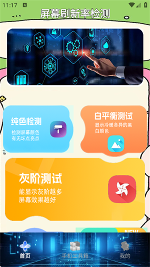 2、屏幕素质测试:提供纯色、灰阶、白平衡等多项检测,快速排查显示缺陷。