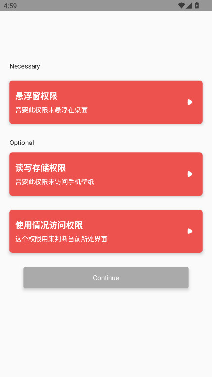 1.在使用侧滑索引之前,我们需要为其开启存储权限、悬浮窗权限、使用情况访问权限;