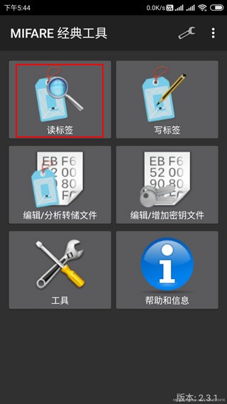1、开启手机NFC功能,打开MIFARE经典工具,将卡片贴附在NFC识别区域,如图所示,会出现发现新标签的字样,然后点击“读标签”;