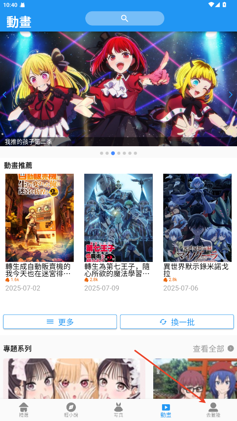 5.在底部菜单栏可切换“精选”“轻小说”“动画”板块。