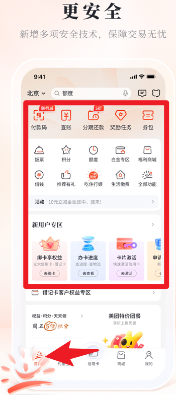 1、作为光大银行信用卡官方APP,安全性极高,用户可放心完成各类金融业务操作。