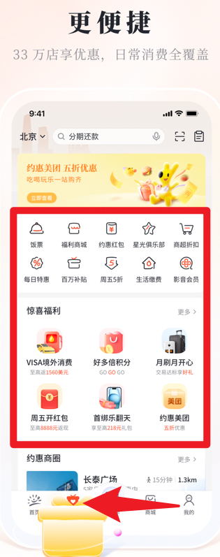 2、集成“金融+生活”一体化服务模式,既能理财还款又能享受优惠福利。