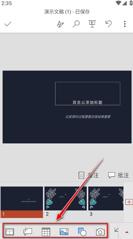5.请输入自己演示文稿标题、幻灯片标题和幻灯片内容。
