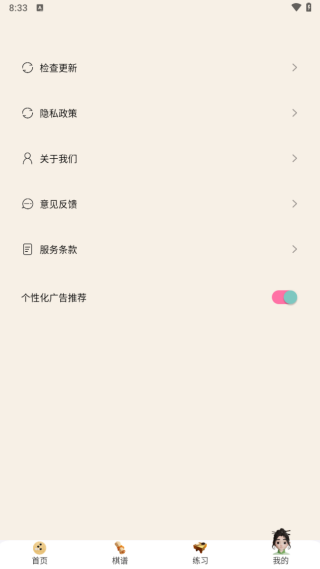 4、我的板块,用户可以检查软件更新,也可以关闭个性化广告推荐。