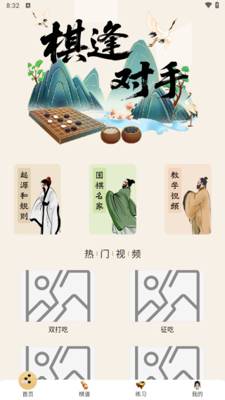 1、下载安装好软件,进入软件首页,可以学习围棋规则,查看围棋名家,观看围棋教学视频。