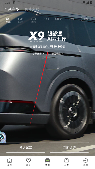 打开小鹏汽车APP,在主界面找到并点击“车辆”模块。