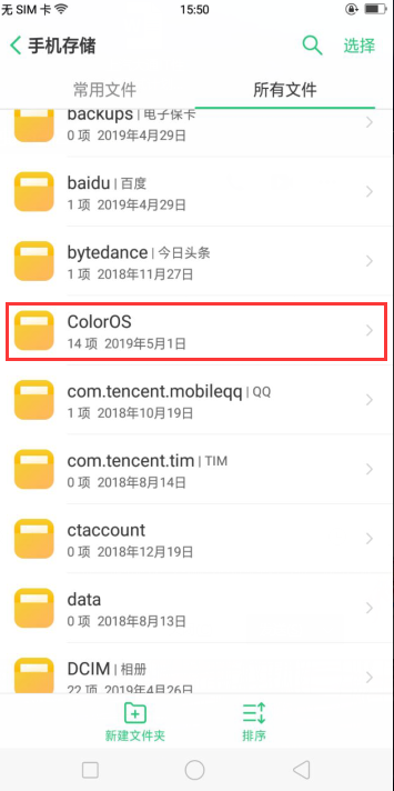 4、显示所有文件夹后,找到ColorOS文件夹,点击打开。