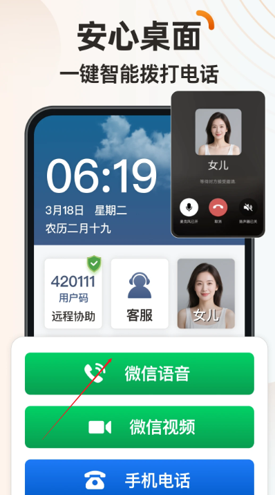 伴伴守护桌面app官方正版(com.fbx.elderlyscreen)是一款非常靠谱的老年人必备桌面守护软件,帮助老人更清晰地查看手机内容。通过语音播报和拍照朗读等功能,老人可以轻松收听和理解手机内容,享受更加便捷的智能生活。