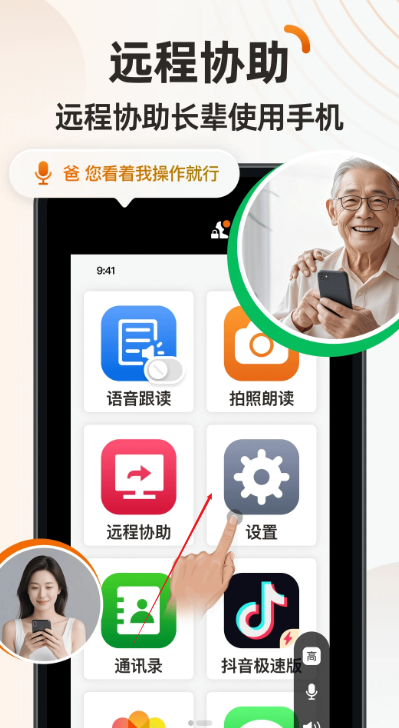 远程协助功能:年轻人可通过该功能远程协助长辈使用手机,当长辈遇到设置难题或需要安装应用时,远程就能帮忙操作,及时解决长辈在使用手机过程中遇到的问题,让长辈使用手机更顺畅。