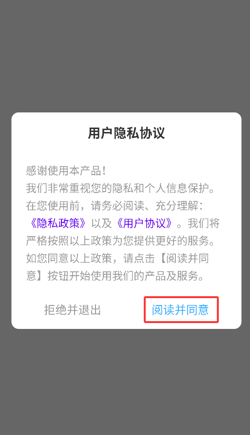 1、首次启动文言文翻译器转换APP时,系统会弹出用户协议确认窗口,点击"同意"按钮后方可进入应用主界面。