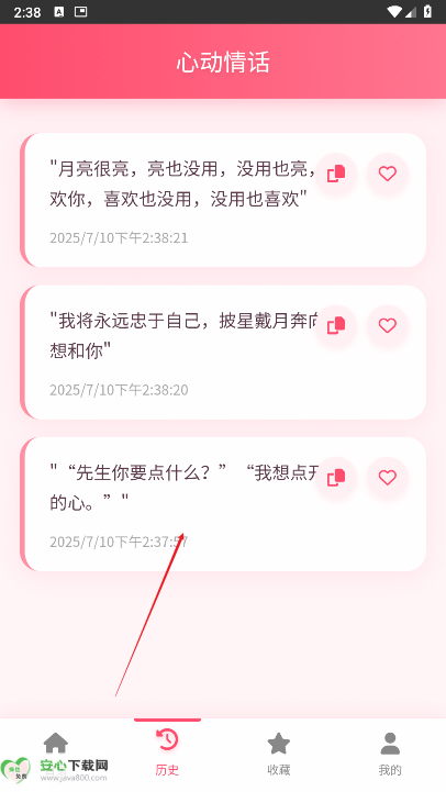 图标变色(如从灰色变为红色)即表示收藏成功,收藏的情话会集中保存在“我的收藏”板块,方便后续随时查看调用。