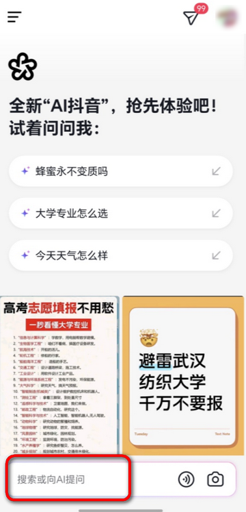 - 这里有丰富好看的内容:带上AI刷抖音,让海量的内容围绕你展开,上一刻心有所想,下一刻就有内容心满意足。