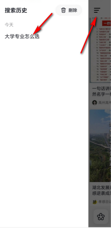 6、点左上角的菜单可以查看你的搜索历史。