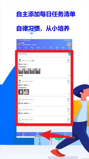 2、在任务清单界面,孩子可根据需要自主添加每日任务,逐项完成后打勾确认,从小培养自律与责任感。