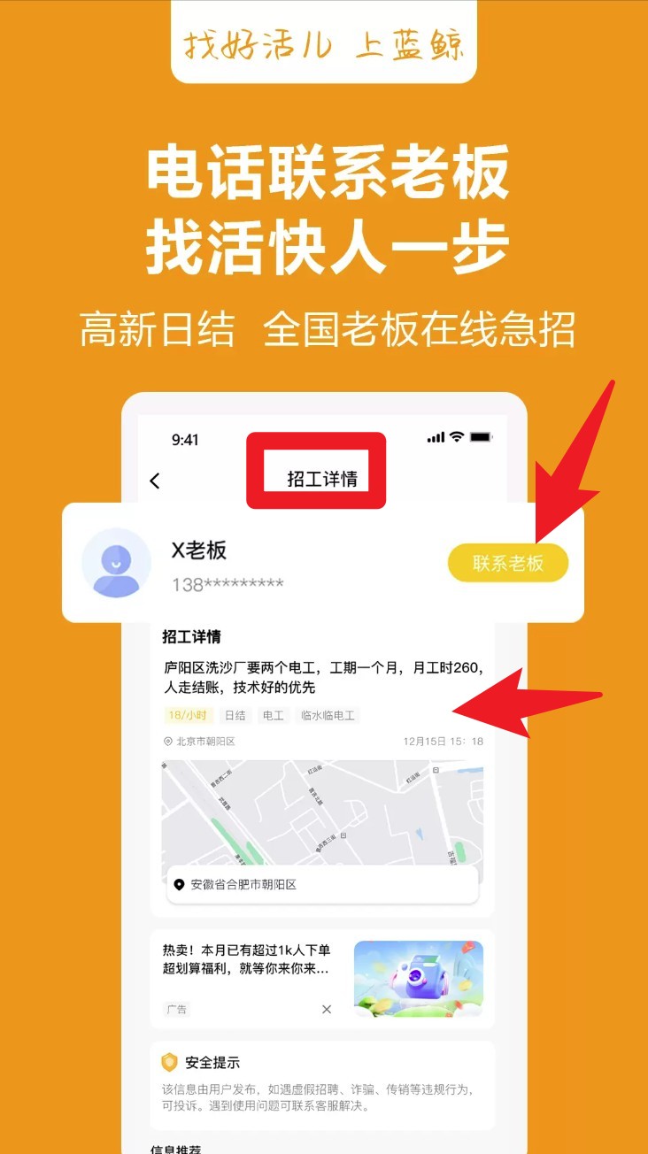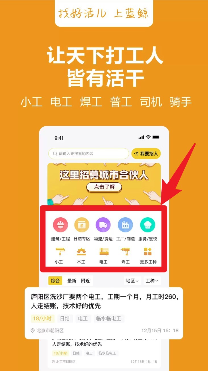 上蓝鲸直招,免费招工找活!致力于服务全国4亿蓝领用户的专业招聘找工作平台。