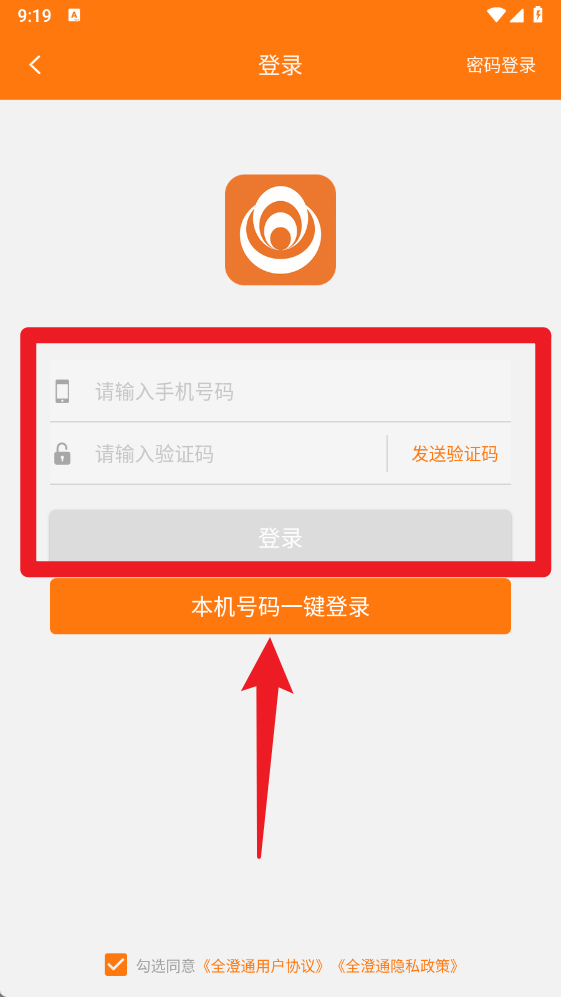 1、登录界面支持输入手机号接收验证码,也可一键登录本机号码,让用户快速完成身份验证,使用更方便。