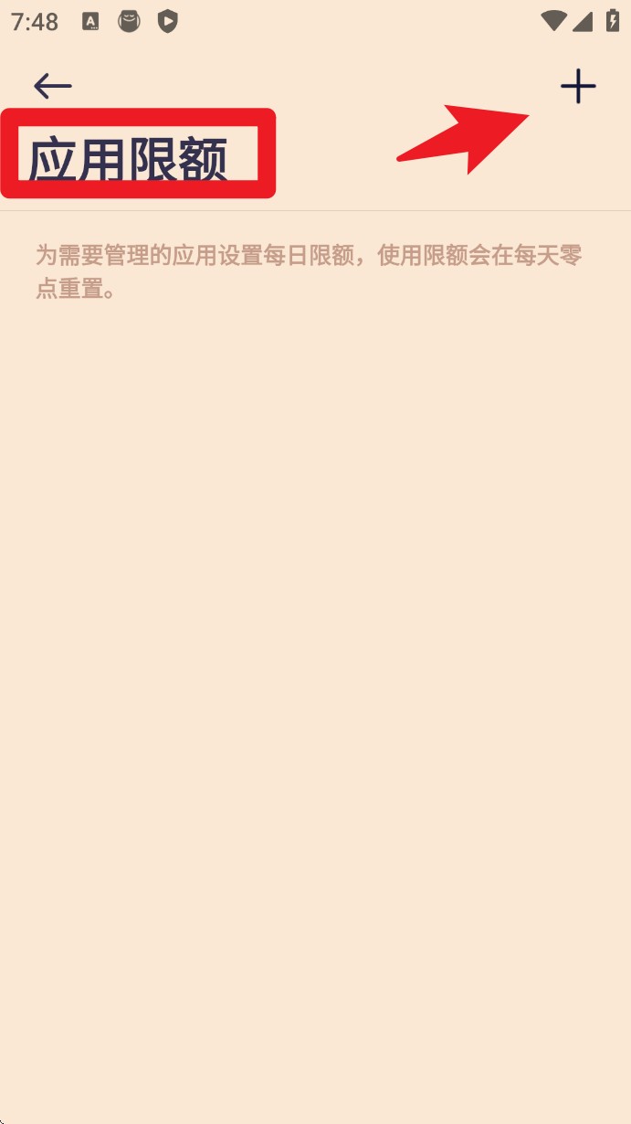5. 若需限制某些 App 的使用时间,可点选「应用限额」后点击右上角「+」图标,为特定应用设定每日上限。