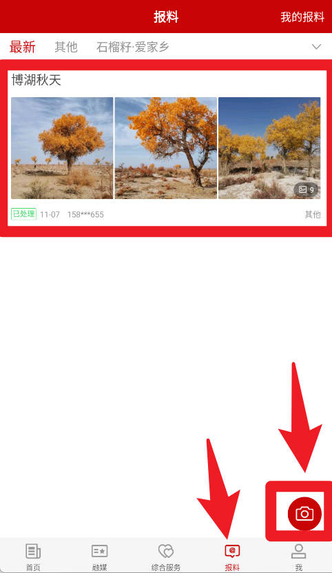 5、在报料专区,用户可上传文字或图片进行新闻爆料,系统会显示处理进度,让信息反馈更加透明高效。