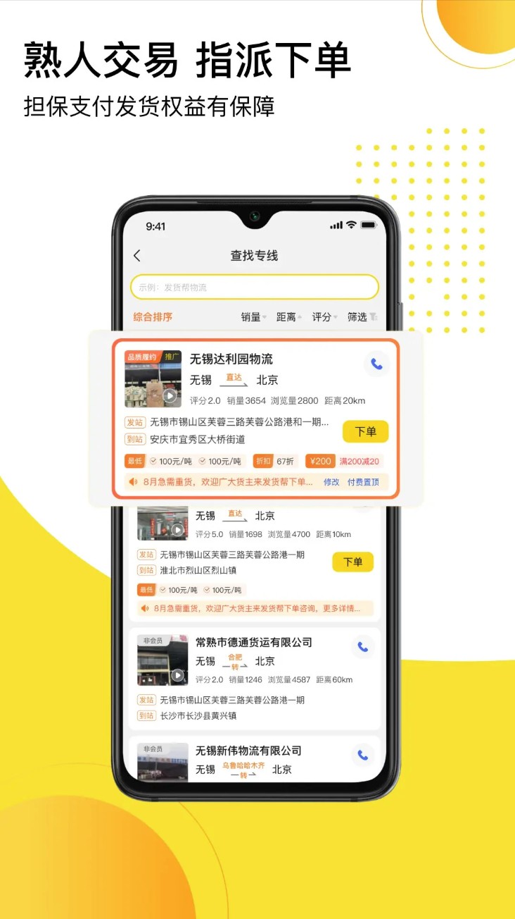 1. 需频繁发货的商户、电商卖家,快速找车发货省时间。