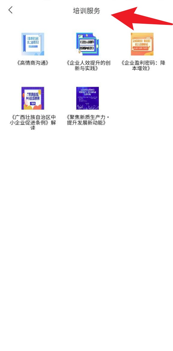 2. 在「服务推荐」页面中浏览服务图标,找到「培训服务」后点击进入,即可查看相关课程列表。