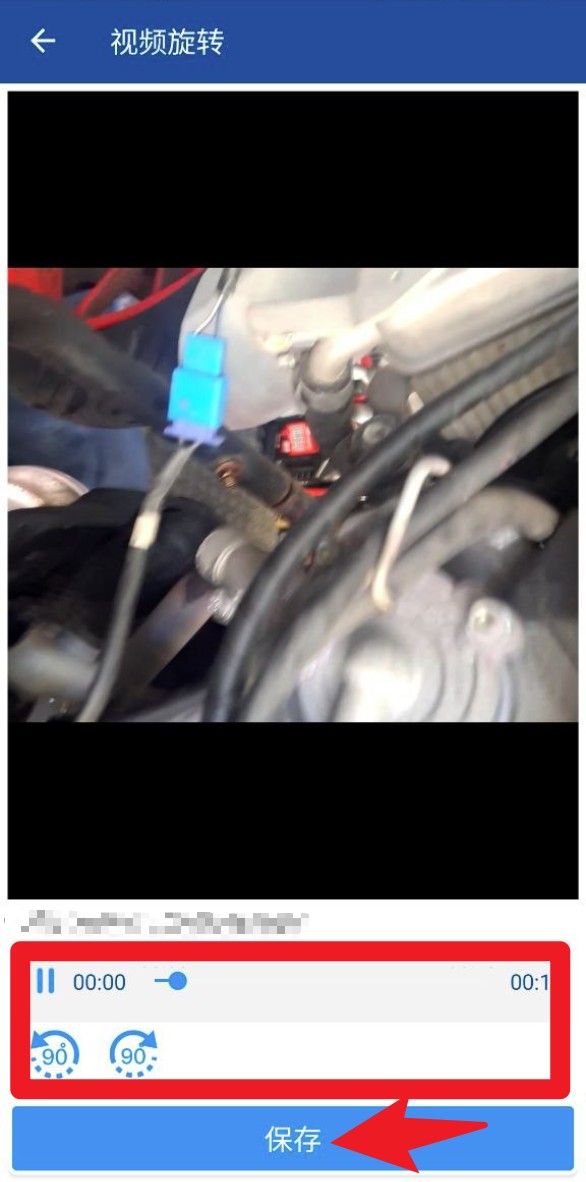 3. 使用视频旋转功能时可通过下方按钮调整角度,旋转完成后点击下方的「保存」按钮完成导出。