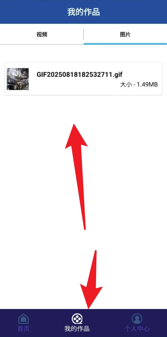 4. 在底部导航栏点击「我的作品」,可查看已完成的 GIF 或视频内容,支持预览与后续管理操作。