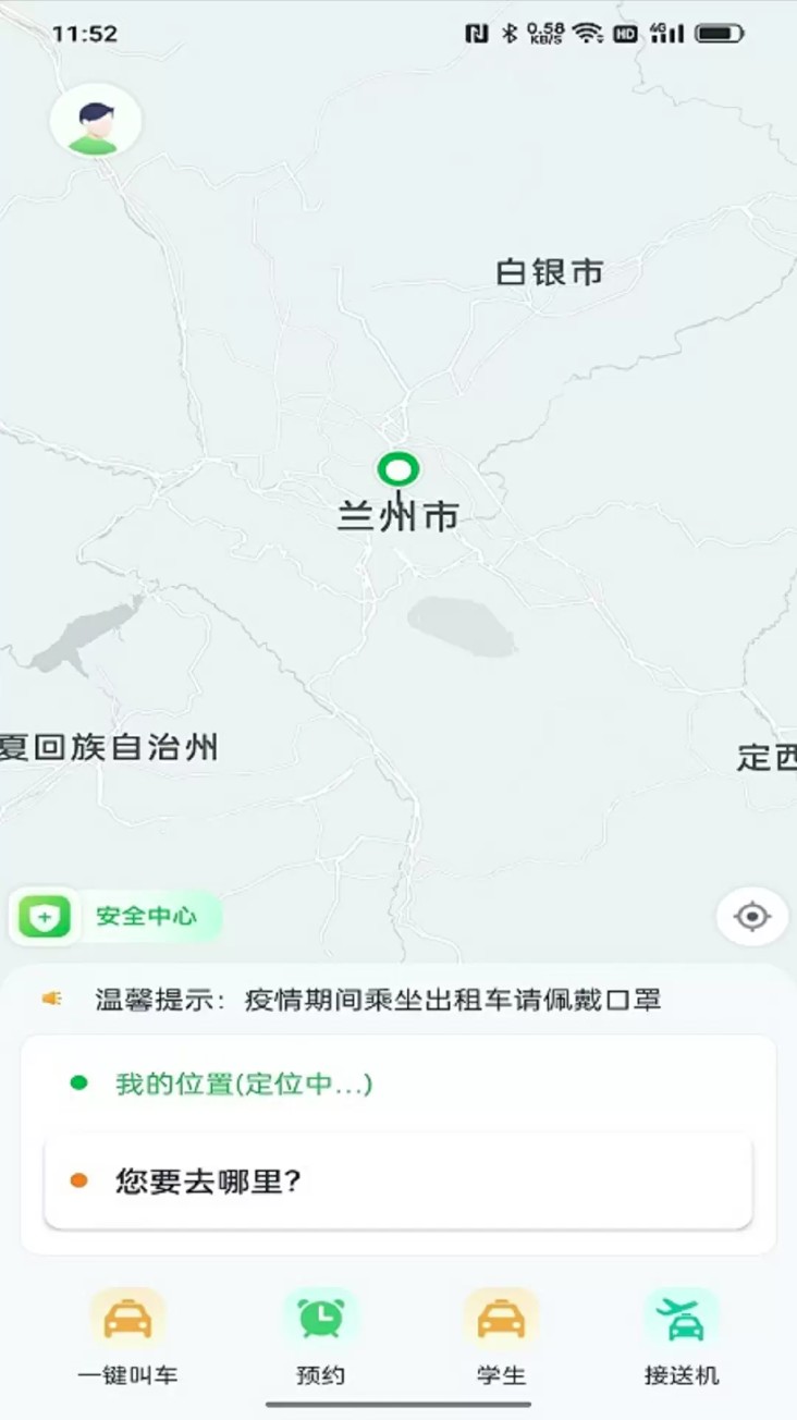 2. 登录后在首页选择当前位置,支持“一键叫车”“预约”“学生”“接送机”等用车类型。